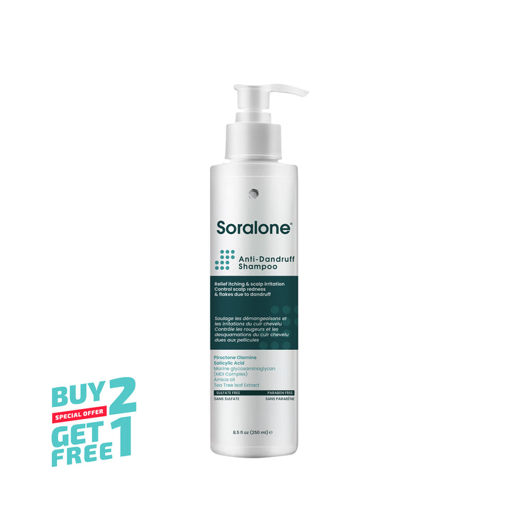 Dandruff is an issue that decreases your confidence and keep you irritated, Soralone shampoo does not only cure your dandruff and eradicate the undesired flakes, it soothes and moisturize the scalp deeply and with the power of MDI complex the scalp integrity is stronger because if preserve the collagen and stimulates it, which is an essential part of the skin.