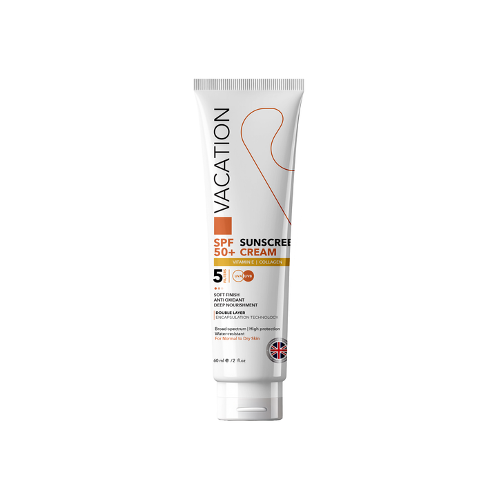 Vacation Sunscreen Cream SPF 50+ – Advanced Care for Dry to Normal Skin**
